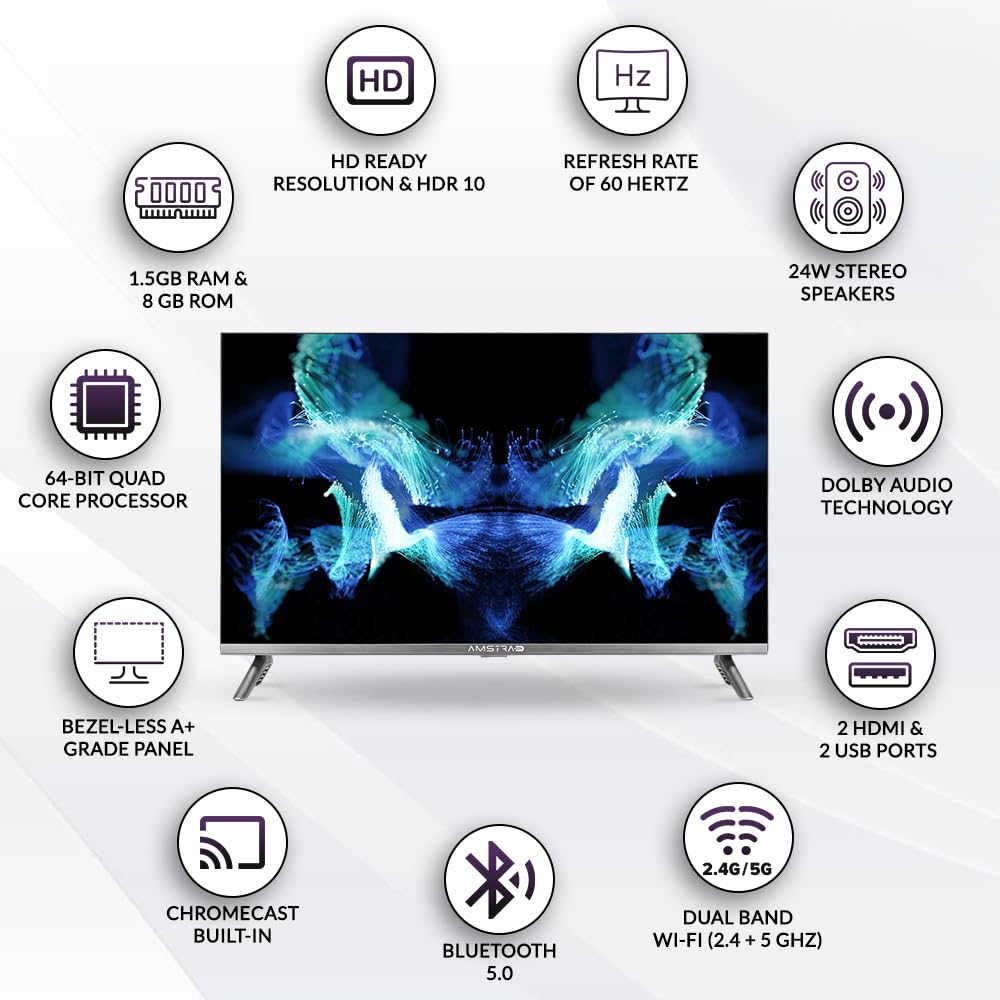 Amstrad 80 cm (32 inches) HD Ready Smart Official Android 11 LED TV AM32HG11Nxt (Bezel-Less Design)