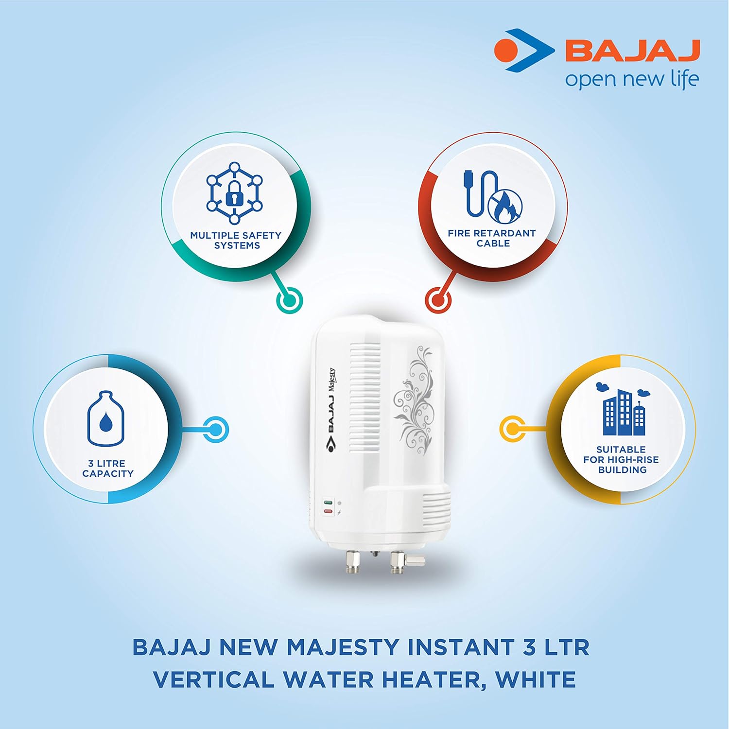 Bajaj New Majesty Instant 3 Litre, 3 KW Verical Water Heater (White) Wall mounting