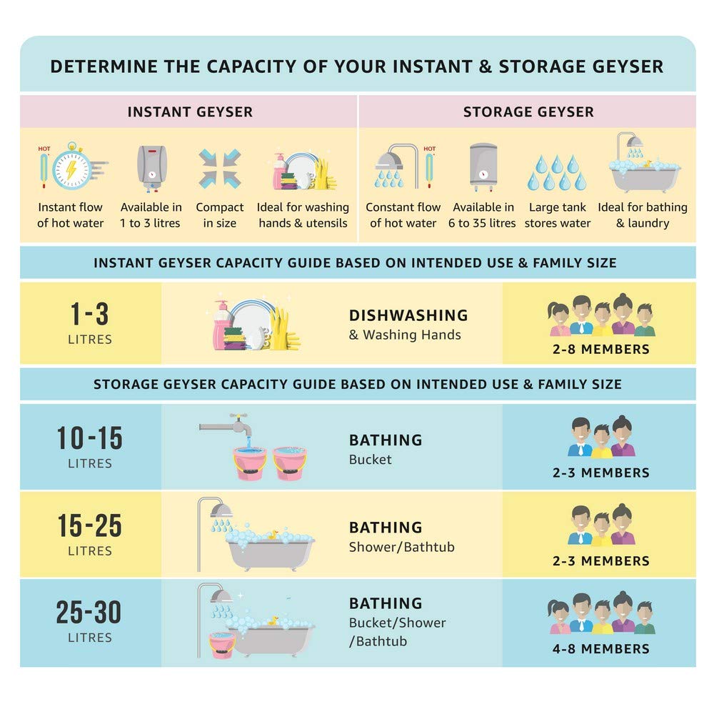 - Type : Instant; Capacity : 3 Litres; Wattage : 3000 Watts; Pressure : 6.5 Bars