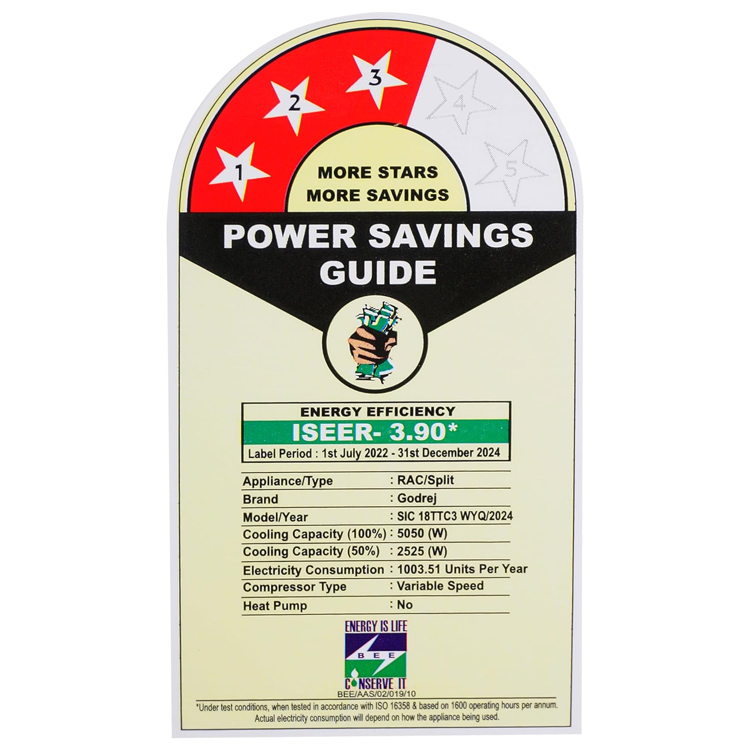 - Energy rating: 3 star, Annual energy consumption: 965.71, ISEER value: 3.85 This model is as per the new star rating standards valid till 2024