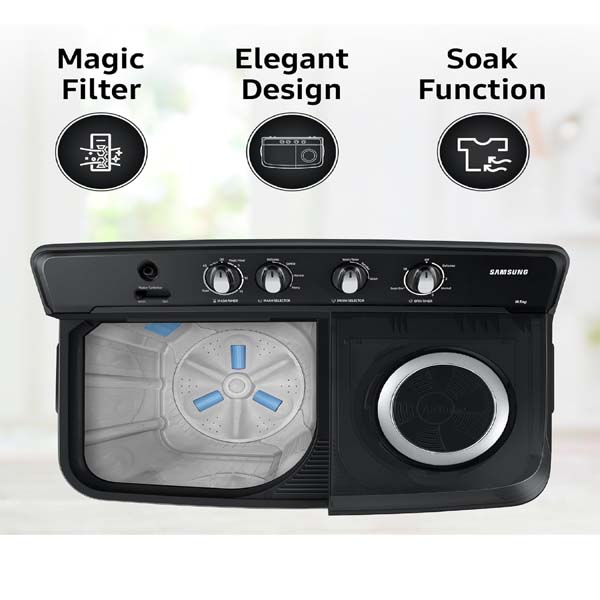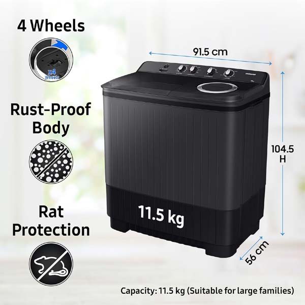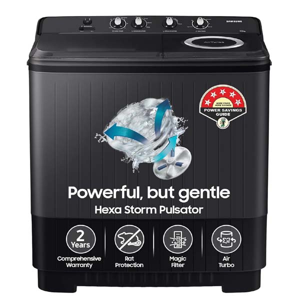 Samsung 11.5 kg Semi Automatic Washing Machine with Hexa Storm Pulsator, WT11A4260GD/TL,Dark Gray