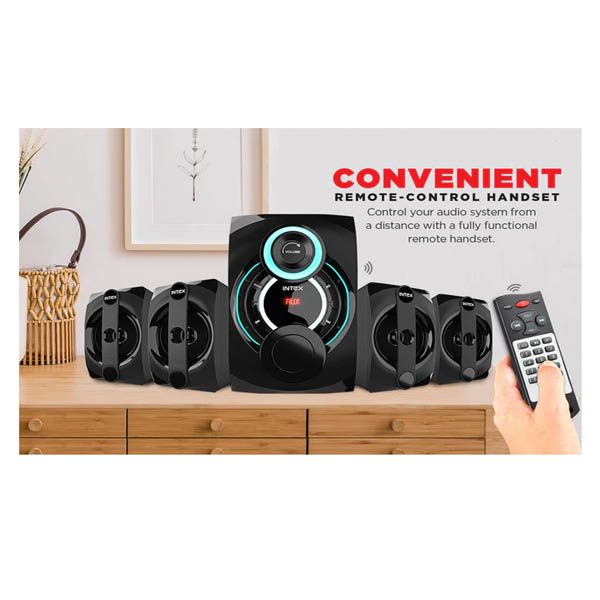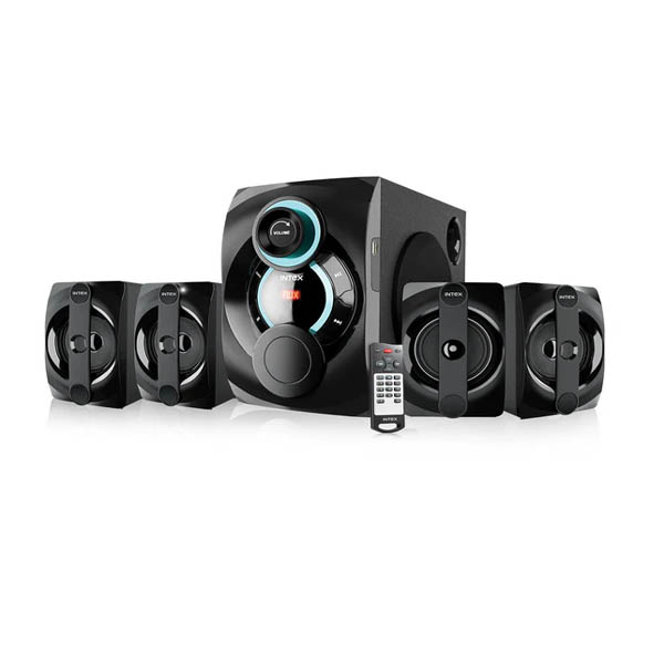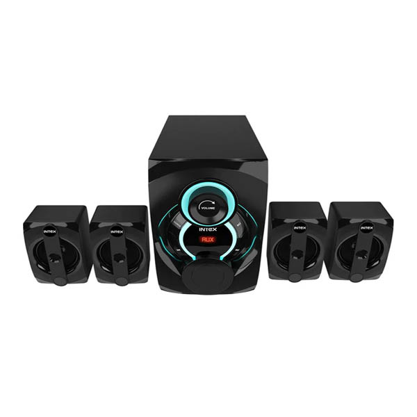 - Wireless music streaming via Bluetooth Do you want a music system that falls in the category of best multimedia 4.1 speakers with several intelligent features? If yes, then you have landed at the right place. Intex Star 4.1 speakers are just what you want. The speakers come enhanced with Bluetooth 5.1v which is one of the latest Bluetooth technologies and ensures a connectivity range of 10 meters. The range is further hyped with other features like Karaoke mode wherein you can record your musical sessions just whenever you are jamming. Star comes with an IR remote which allows for seamless audio controls. The playability ranges from AUX, and Bluetooth to USB. The speakers have USB support up to 32 GB. You can also control the volume and bass via a dedicated analog knob. To add to these superb features is a dedicated LED display that showcases audio modes. A 78W multimedia speaker set is all you need to set the tone for any party you are hosting. The lights blink as the music traverses throughout the music sessions along with an immersive listening experience.